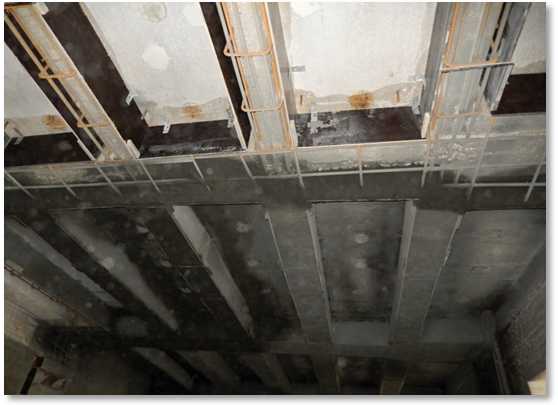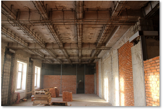 Нашей компанией были выполнены работы по усилению колонн и балок перекрытий в административном здании Министерства Обороны. Здание советской эпохи постройки нуждалось в срочной реконструкции. Старые перекрытия частично демонтировались. Существующие колоны и балки были армированы. Далее была выставлена опалубка для создания запланированной геометрии конструкции ремонтируемых колонн. Усиление методом торкретирования проводилось по колоннам и балкам.